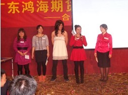 接下来进行公司年度表彰,公司2010年度涌现出许多表现突出,为公司获得荣誉的的优秀员工,如去年在和讯网站“谁是你的金手指—2010中国最伟大的投资顾问”评比中,我司研发部叶英杰获得“最受投资者信赖的投资顾问”期货组十强。我司还存在不少为公司立下汗马功劳的业务精英和业务部门,如胡征、姚英女、徐麟、陈超明、范康惠、顺德营业部、投资部、南海部等等等等。平凡的岗位上也涌出了许多优点明显的优秀员工,如徐麟、陈永德、夏洪、陈平、黎华、郭薇等,各项大奖实至名归,他们在平凡的岗位上作出了不平凡的事迹,显出了我们鸿海人的优点和特色。