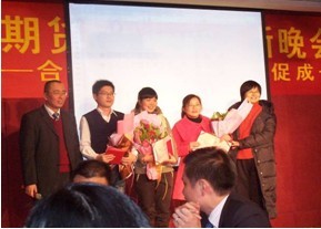 接下来进行公司年度表彰,公司2010年度涌现出许多表现突出,为公司获得荣誉的的优秀员工,如去年在和讯网站“谁是你的金手指—2010中国最伟大的投资顾问”评比中,我司研发部叶英杰获得“最受投资者信赖的投资顾问”期货组十强。我司还存在不少为公司立下汗马功劳的业务精英和业务部门,如胡征、姚英女、徐麟、陈超明、范康惠、顺德营业部、投资部、南海部等等等等。平凡的岗位上也涌出了许多优点明显的优秀员工,如徐麟、陈永德、夏洪、陈平、黎华、郭薇等,各项大奖实至名归,他们在平凡的岗位上作出了不平凡的事迹,显出了我们鸿海人的优点和特色。