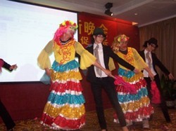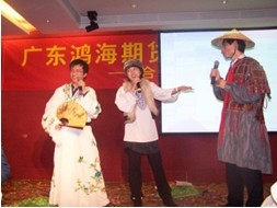 掌声和鲜花过后,就是我们鸿海人自编自导的节目开场了。今年的帅哥美女主持一如既往的幽默打趣,节目也格外丰富多彩。有南海部的舞蹈串烧优美风俗,有顺德部的小品2010年最流行的《偷菜》,有投资部老男孩演唱着经典的歌曲“老男孩”,有研究中心的古装小品《青梅煮酒,天下归心》搞笑绝伦,运营中心与行政办公室合作表演的反串舞蹈“桃花一朵朵”更是让会场里笑声沸扬,还有比美央视节目的投资部技术部联手的“鸿海佛手”,还有由市场部自编自导的超级爆笑小品“非诚勿扰”,广州部合唱的《在路上》让大家感动不已。